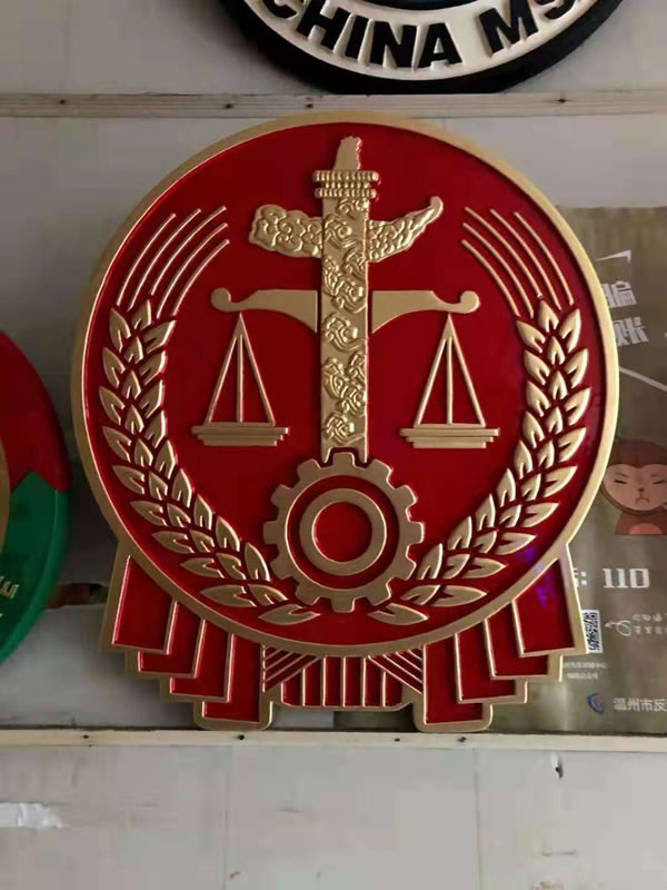 | 安裝方式 | 法徽定做-小徽章背面都配有穿掛耳孔,釘子釘在墻上,再用穿鐵絲鋼絲,適合安裝在辦公室/會(huì)議室會(huì)場(chǎng)等。大徽后面為膨脹螺絲孔,安裝需要定做鐵架,鐵架固定墻面上后,再將徽章固定在鐵架上。玻璃幕墻也是需要鐵架方式安裝。 |